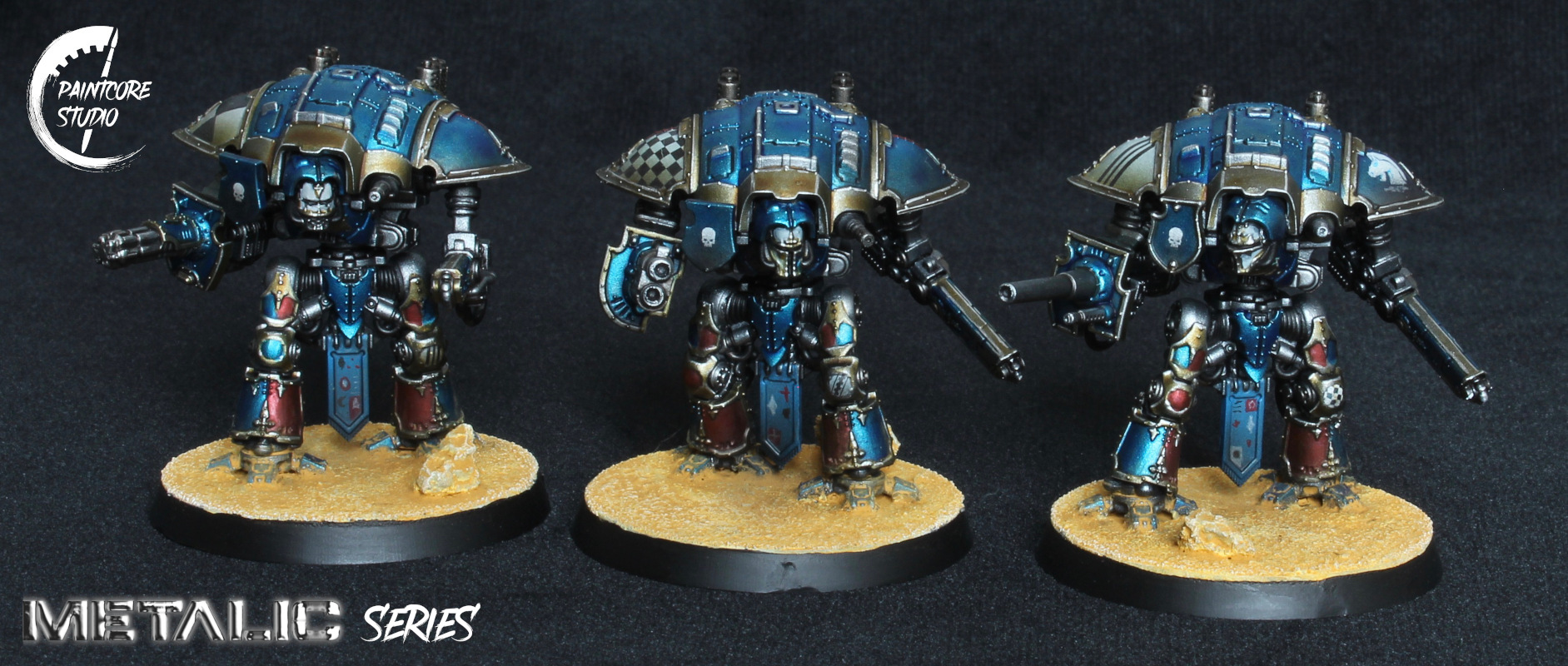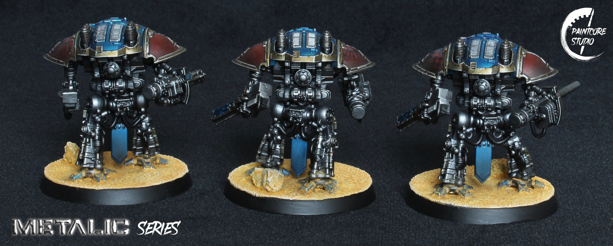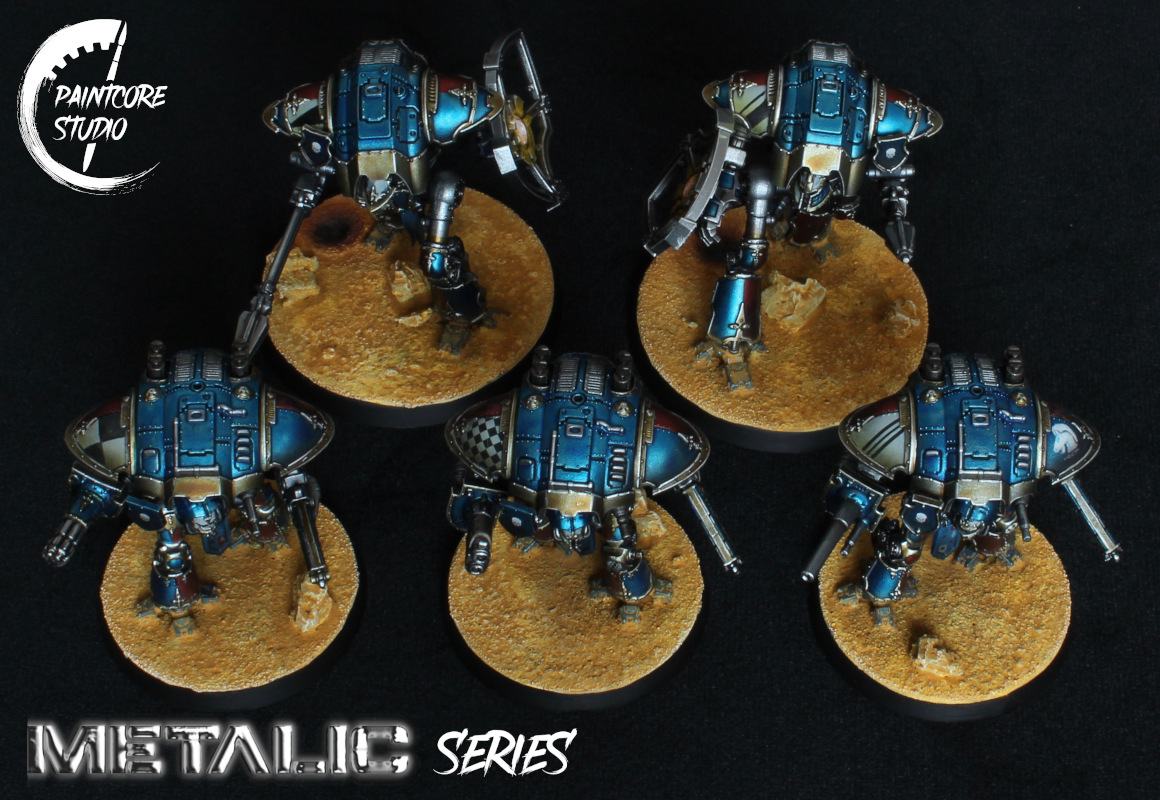 The miniatures from the Metalic Series collection are processed using metallic paints worked with diverse colours, giving the armour parts realistic metallic reflexions, recalling the visual rendering of modern vehicle bodyworks.